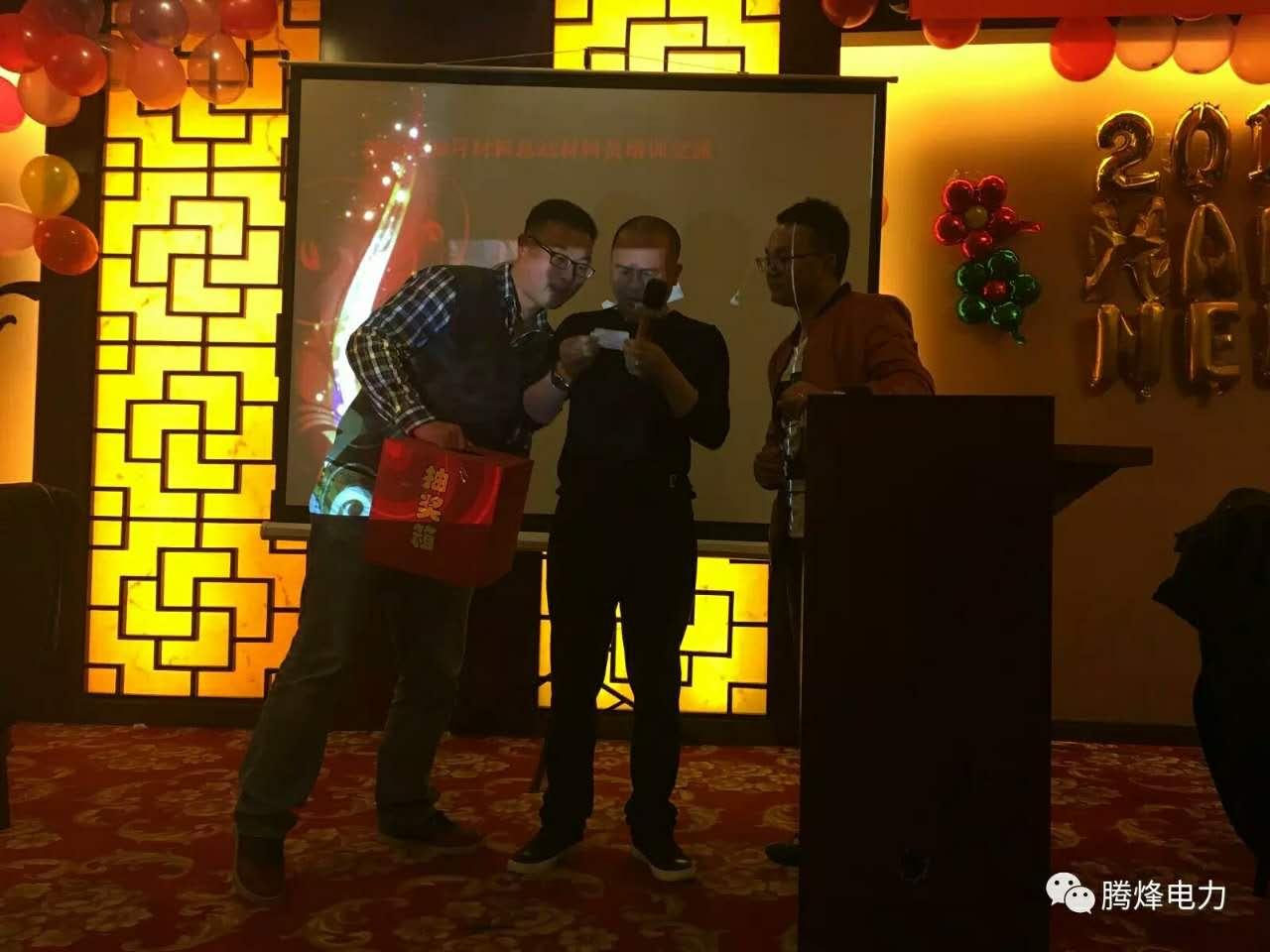 2017年1月20日,我公司2016在廣東省深圳市光明新區(qū)長豐花園酒店3樓會議室召開年終總結(jié)會,會議上對2016年的工作進行總結(jié),公司晚宴年會在2樓成功舉行,晚宴前公司總經(jīng)理蔣浩同志對公司2016年的各位先進員工進行表彰,對2016年微信公眾平臺投稿先進集體及個人進行頒獎,并對年末仍堅守在深圳500kV滇西北工地的管理人員和22個班組給予特殊貢獻獎。在晚宴就餐中,進行了一輪又一輪的即興現(xiàn)場抽獎。截止晚上11點,年會正式結(jié)束,標志著騰烽電力2016年年會暨表彰大會正式圓滿落幕。