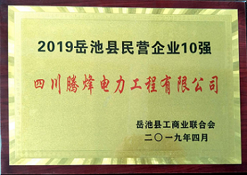 2019年4月30日,岳池縣委、縣政府在吳學(xué)藝術(shù)中心多功能廳召開了以“新時(shí)代、新岳商、新征程、新貢獻(xiàn)”為主題的岳商大會(huì),會(huì)上騰烽獲得了“2019岳池民營企業(yè)10強(qiáng)”的榮譽(yù)稱號(hào)。