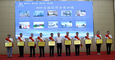 2019年4月30日,岳池縣委、縣政府在吳學(xué)藝術(shù)中心多功能廳召開了以“新時(shí)代、新岳商、新征程、新貢獻(xiàn)”為主題的岳商大會(huì),會(huì)上騰烽獲得了“2019岳池民營企業(yè)10強(qiáng)”的榮譽(yù)稱號(hào)。